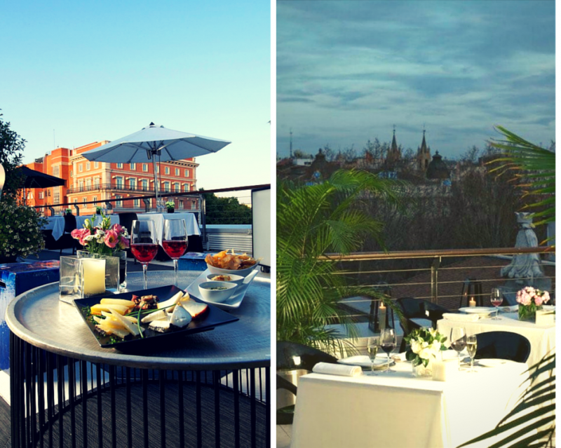 3. Sus vistas. Al final, más allá del ambiente o la carta, es por ellas, y por la brisa que corre en las azoteas, por lo que hay cola para subir a los áticos en los atardeceres madrileños. Y las del quinto piso del Thyssen-Bornemisza son de las mejores: apuntan a Los Jerónimos y ofrecen tranquilidad en pleno Paseo del Prado. En sus 250 metros no faltan detalles como flores frescas, mantelería de hilo o vajillas de la marca francesa Villeroy & Boch. En el restaurante de una pinacoteca la clase no puede faltar.