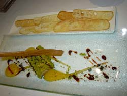 La carta es sencilla, con pocos platos, lo que lejos de ser un inconveniente, presenta la ventaja de una elección más atractiva, el arroz cremoso con manitas, los garbanzos con langostinos o el cabracho con su guiso de patatas muestran esos sabores tradicionales de nuestros mayores, pero el foie con pistachos nos vuelve a poner al día de lo actual, otros clásicos las croquetas o los callos, dos joyas tradicionales que se incluyen en su oferta. Pero la movilidad de la carta es constante pues los chefs Raúl Harillo y Miguel González intentar ofrecer lo mejor de cada temporada.