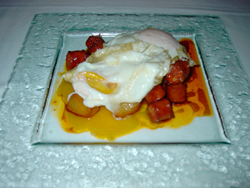 Los huevos con chistorra, elaborados con secreto actualizado o el rape asado con salsa de crustáceo o la mus de chocolate con crujiente de praliné, son claros ejemplos de mis comentarios.