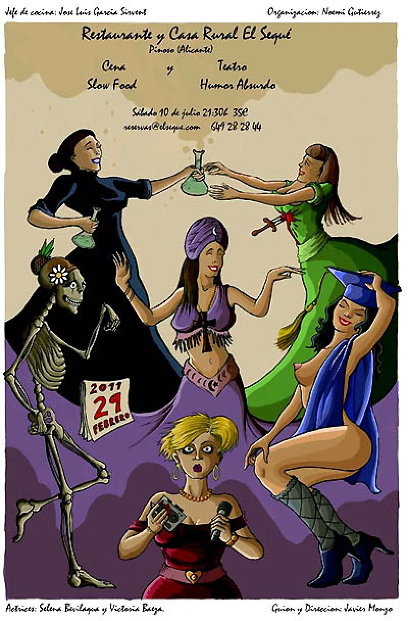 La Casa Rural y Restaurante El Sequé (Pinós, Valencia) organiza para el sábado 18 de febrero de 2012 una cena especial para enamorados y desenamorados en la que se ofrecerá una cena Slow Food y una función de teatro de Humor Absurdo con Selena Bevilacqva y Victoria Baeza, bajo la dirección de Javier Monzó