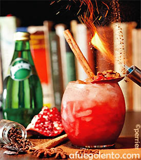 Posteriormente dejamos caer canela en polvo encima del cóctel y la quemamos con la ayuda de un soplete, para conseguir un aroma a canela ahumada muy interesante