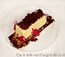 Para la decoración/acompañamiento, cortamos una rodaja de cascara de granada, y encima ponemos las semillas de granada sueltas. Le echamos unas gotas de sirope especiado