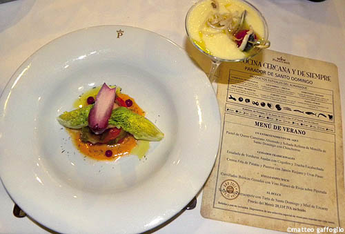 Por supuesto, el de Santo Domingo también ha incorporado la eco-cocina, al igual que todos los que constituyen la red de Paradores, una filosofía con la que se retoma la preservación de la cultura local, el apoyo a los cultivos y desarrollos ecológicos, y respeto a la biodiversidad, haciendo referencia al producto nacional especializado, aclimatado a pequeñas zonas, incluso a productos que hoy han caído en desuso y que eran utilizados en la antigüedad o en un pasado remoto y que se obtienen gracias a los pequeños productores locales especializados, horticultores, agricultores, granjeros y ganaderos, a los pescadores y a las lonjas más cercana, a los cazadores y artesanos autóctonos.