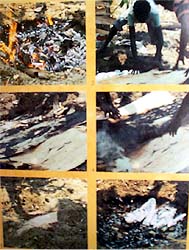 punto más vivo, ponemos sobre ellas la comida que hemos elegido para cenar, anteriormente envuelta en suaves hojas de "Spear tree" (Macaranga tanaris), entre otras muchas variedades. Cubrimos el agujero con "paperbark" (cortezas de árbol), las que al mismo tiempo cubrimos con arena o tierra caliente. Y éste es todo el procedimiento.