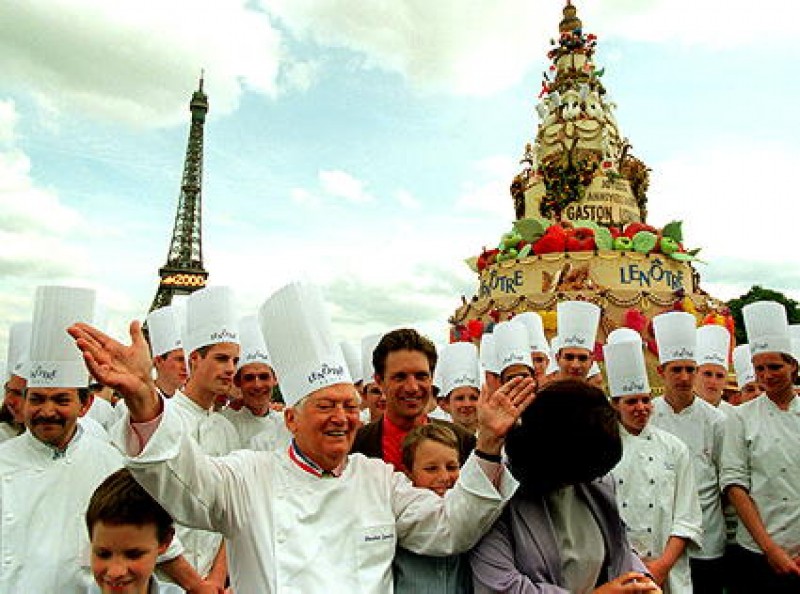 Una tarta gigante de diez metros de altura por siete de diámetro, instalada frente a la torre Eiffel, sirvió para celebrar el 80 cumpleaños del, para muchos considerado, mejor pastelero del siglo.