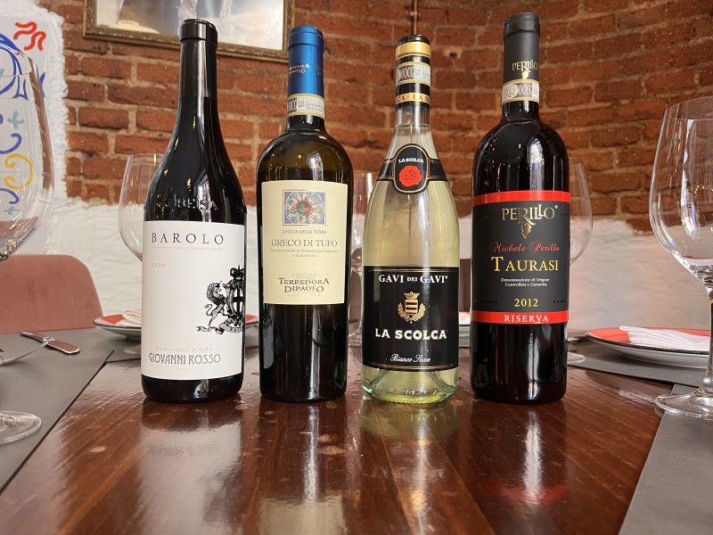 Los expertos comentaron la personalidad de cada vino. Anna Carla Zucchini, al frente de Luna Rossa, destacó la rotundidad y carácter del Taurasi, mientras que William Sequerra, sumiller de Despensa Negrini, ensalzó la armonía del Barolo, con su acidez firme y taninos bien integrados. En blancos, el contraste fue revelador: el Gavi, terso, seco, con verticalidad y mineralidad, frente al Greco, aromático, con matices melosos, ligero, sensual y prometiendo evolución en la botella.