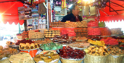 Algunos de los dulces típicos que se encuentran en los Portales son limoncitos rellenos de coco, dulce de leche, cáscara de naranja, camotes, piñas, higos, tunas, chilacayotes, cocadas, jamoncillos y borreguitos preparados con azúcar.