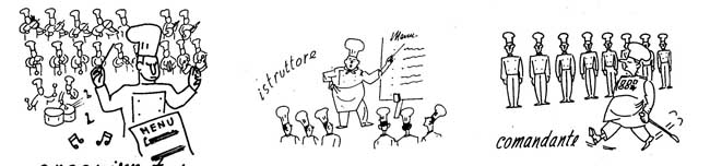 Como la cocina en general ha seguido la evolución de los tiempos, no sólo en Italia sino en todo el mundo; así el trabajo en las cocinas ha debido uniformarse a las exigencias que, fatalmente, la evolución constante llevaba a volver a ver relativamente a ciertas costumbres, a ciertos métodos de trabajos han resultados faltas de cohesión por una rápida alternación del trabajo de cocinero. Así los cocineros aumentaron de número, se formaron en brigadas de cocina más o menos numerosas según la importancia y de la cantidad del trabajo que desenvolver. Las exigencias de los individuos, de los señores de entonces, devinieron siempre mayores y urgentes, y por lo tanto el trabajo debía envolverse y adecuarse a las mudadas exigencias para llegar a secundar las formidables necesidades de los estómagos de entonces.