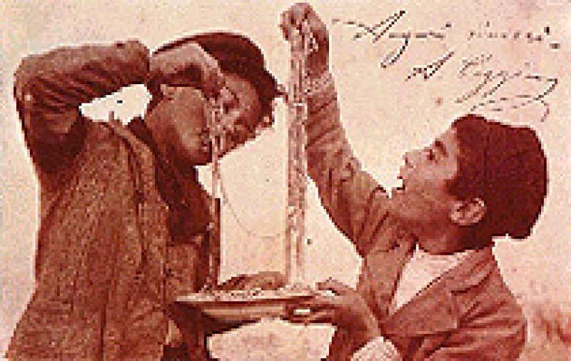 Fabricación de spaguetti en Nápoles (postal de 1900)