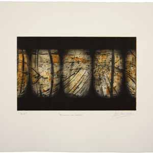 Maite Díez Aguado ha recibido el segundo premio por su obra Barricas de Roble, que refleja un gran dominio de diferentes técnicas: la combinación del barniz blando, el aguatinta y la punta seca, le han permitido crear una composición donde el juego de luces y tonos destaca un elemento fundamental para la maduración de los vinos: la barrica.