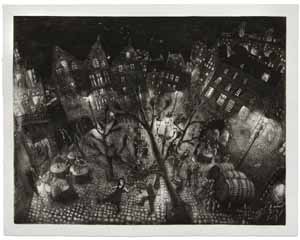 Después de valorar las 122 obras procedentes de toda la geografía española (un 62% más que el año anterior y el mayor número en la historia de este premio) y de países como Holanda o Alemania, el jurado ha otorgado el primer premio a la obra De Londres a Berlín, del francés Clément Richem: un artista de 25 años con un talento y una trayectoria muy prometedora, que recurre en este grabado a dos técnicas calcográficas de larga vida, el aguafuerte y el aguatinta, para sumergir al espectador en un paisaje urbano nocturno, festivo, con ricos juegos de luces, que trasmite alegría de vivir y nos trae ecos brueghelianos y de la Belle Epoque.