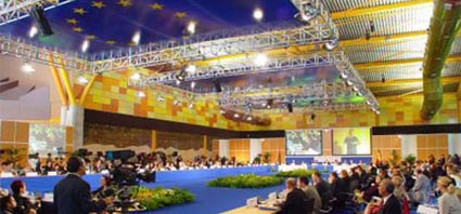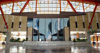El recién inaugurado Palacio de Ferias y Congresos de Málaga está dotado de 60.000 metros cuadrados y presenta un moderno diseño vanguardista que reproduce en su cubierta la alegoría de un ondulado mar de aluminio en el que nada un gran pez de titanio. El palacio de la capital de la Costa del Sol está llamado a ser el gran espacio estratégico ferial del Mediterráneo.