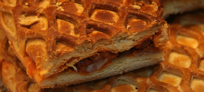 Como estamos en un portal gastronómico empezaremos hablando de la parte culinaria del asunto. El hornazo, cuya receta se resume al extranjero -e incluso al español del norte- como “empanada de embutidos”, es una contundente receta no apta para vegetarianos, el cachopo castellano.