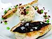 Rodaballo con su brandada y guisantes