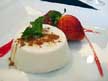 Flan de queso de cabra al aroma de azahar y ganache de membrillo