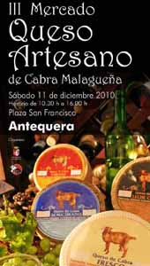 El ya tradicional mercado de quesos que se celebra en Antequera (Málaga) cada otoño celebrará su tercera edición este sábado, con el fin de potenciar la difusión entre la población de las cualidades del queso artesano, así como crear lazos comerciales entre los productores y abrir nuevos circuitos de distribución.