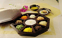 El ?Gu Jeol Pan? representa los colores vivos de los cinco puntos cardinales (norte, sur, este, oeste y centro) y los ingredientes picados en juliana fina reflejan el talante y la inspiración del chef. La combinación crea un sabor y una presentación realmente magníficos.