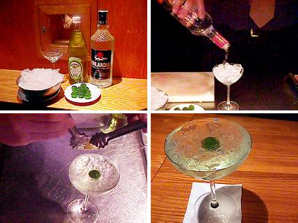 LLenamos una copa abierta de champán de hielo roto y ponemos 2 partes de ginebra o vodka y 1 parte de lima RoseŽs. Se remueve un poco y se decora con guinda verde o piel de limón exprimida y metida en la copa.