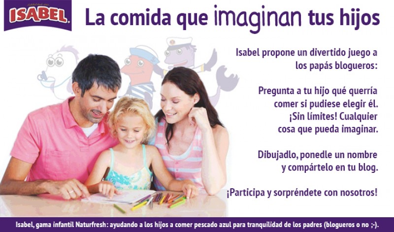 La conservera, con el fin de divertirnos a nosotros y a nuestros hijos, nos ha propuesto un juego para realizar con los niños, y el resultado nos ha dado muchas ideas de cómo hacer que los más pequeños se coman el pescado sin rechistar. Nos han propuesto preguntarles directamente a ellos, los más sinceros comensales que nos podemos encontrar en esta vida, y también los más exigentes. “La comida que imaginan tus hijos” es una forma diferente de conocer los gustos de los reyes de la casa y que resulte más fácil que se coman el pescado. Por esta razón hemos jugado con María y Silvia, las dos niñas de la casa. A ellas no les vale saber lo bueno que es o la cantidad de fósforo que tiene, a ellas el pescado no es gusta nada. Eso sí, cuando las sentamos en la mesa y les damos unos rotuladores, las malas caras y se ponen a dibujar como locas su plato favorito.