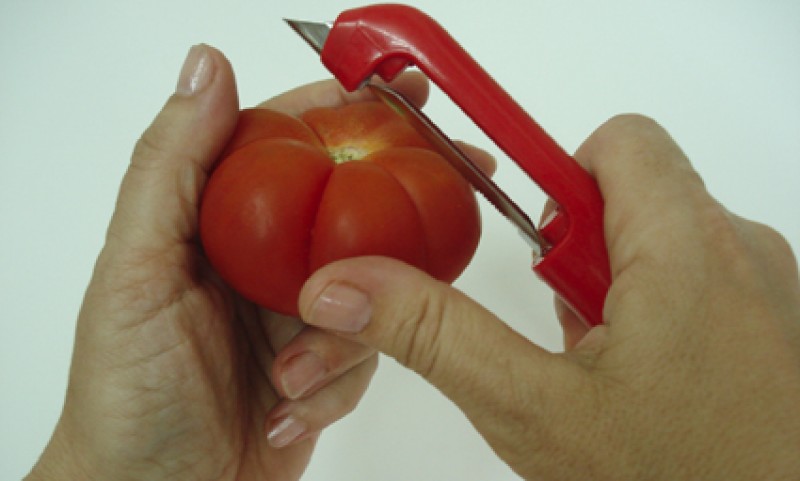 Ya tenemos el siguiente trueque, que hemos encontrado en otra isla, esta vez en Mallorca. Isabel tiene dos pelatomates como el de la foto y ha decidio ofrecer uno aquí. Asegura que es fantástico comprobar cómo este instrumento le ayuda a quitar la fina piel de los tomates con un corte limpio y sin esfuerzo.