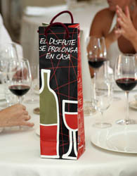 Los consumidores españoles ya pueden llevarse el vino sobrante del restaurante a casa. Los clientes recibirán una bolsa especial en la que introducir la botella y así poder transportarla cómodamente. La iniciativa, denominada El disfrute se prolonga en casa, está impulsada por el Consejo Regulador de la D.O.Ca. Rioja y la Asociación Euro-Toques, dos entidades referentes en los campos del vino y la gastronomía, respectivamente, y se enmarca en un acuerdo global encaminado a fomentar el consumo responsable del vino en la sociedad española.