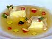 Ravioles con falsa ricota de aceite de oliva y suero de tomate ahumado al romero