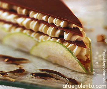 Triángulo lácteo con mousse de enebro de Houlle y manzana Granny Smith