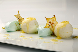 ESFERAS DE CHOCOLATE BLANCO Y YUZU CON NUBES DE WASABI
