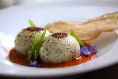 Una vez hecha la mezcla, hacer bolas de 35g aproximadamente y envolverlas en papel transparente. Cocer las bolas de sepia en el caldo preparado a 65ºC durante 15 minutos. Dejar reposar un minuto más fuero del agua, abrirlas y saltearlas en una sartén de teflón hasta dorarla ligeramente.