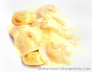 Rellenar la pasta fresca con pedatcitos de queso y virutas de trufa. Con la ayuda de un molde, sar la forma deseada a la pasta rellena, en este caso, de lunette