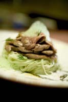Por su parte, Ricardo Sanz, fiel a su cocina de fusión, ha ideado un solomillo de cerdo ibérico macerado sobre cama de somen. En su carrera profesional, este notable chef ha sabido aunar la tradición de la cocina japonesa con la innovación de nuevas técnicas y la incorporación de ingredientes propios del acervo gastronómico mediterráneo. El mismo denomina a este tipo de cocina ?cruce de caminos?. El éxito de Ricardo se basa en el arte de saber combinar recetas niponas con nuestros productos de la tierra.