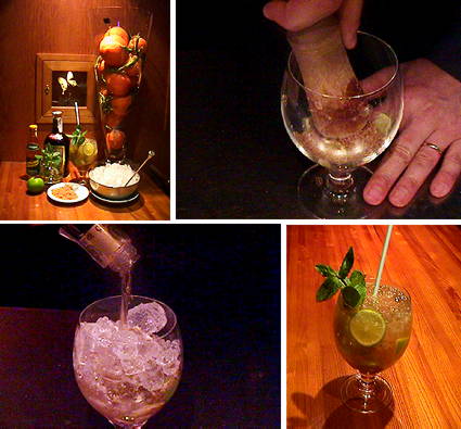 En una copa grande se pone media lima troceada con una cucharada de azúcar moreno y una rama de hierbabuena fresca. Se machaca suavemente, sin romper la hierbabuena, y se llena con hielo roto. Echar una copa de ron añejo y terminar llenando la copa con ginger ale. Remover y servir con una pajita.