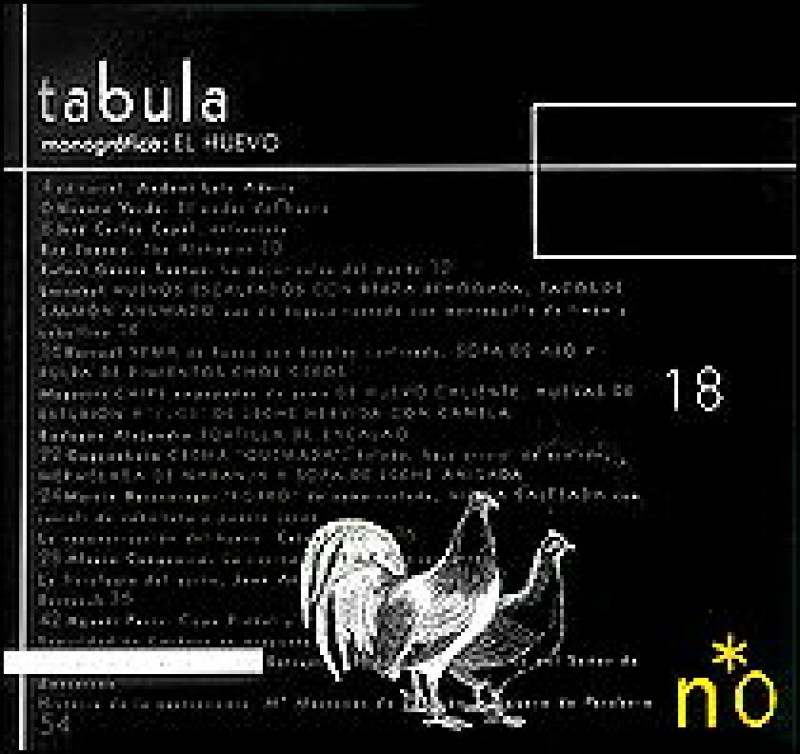 El grupo Martín Berasategi acaba de lanzar al mercado el número 0 de su revista ?Tabula?, una revista diferente y audaz, repleta de información culinaria, recetas, artículos, entrevistas y calendario de actividades gastronómicas. El presente número ofrece un monográfico sobre el huevo y en él encontramos información exhaustiva al respecto.