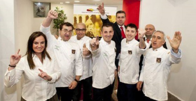 No tuvo mucha suerte la delegación española que finalmente terminó en penúltima posición sólo por delante de Guatemala. El chef Alberto Moreno presentó sus creaciones bajo la influencia e inspiración de la cocina monacal. El plato de pescado, bajo el nombre “Caminos de Agua”, mostraba una trucha escabechada con relleno de cangrejo y gambas. La guarnición que acompañaba al plato estaba realizada principalmente por una salsa de bacalao con apio (ingrediente obligatorio que se conoció un día antes de la competición).
