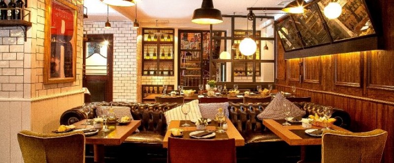 La decoración del local está firmada por el interiorista  Lázaro Rosa-Violán, el local cuenta con una barra de madera y chimenea. Sofás Chester y taburetes altos de piel, mesitas para dos y alargadas mesas para compartir. De estética minimalista y rústica gracias a los ladrillos vistos y un mobiliario que mezcla la piel, el ante y la madera en tonos neutros. Como si se tratara de una extensión del edificio del S.XIX, pero con un toque transgresor.