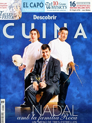 Los tres hermanos del Celler de Can Roca (Girona)- Josep, Joan y Jordi? cocinan y maridan un menú de tres estrellas especial para este mes de Navidad en Descobrir cuina. Como producto del mes: "capó", el pollo más sabroso del corral, que no puede faltar, en los encuentros gastronómicos de estas fechas. También, unas cuantas ideas de decoración para vestir bien las mesas en las fiestas. Además, incluye una entrevista a Jean Luc Figueras y, como cada mes, ofrece recetas de Carme Ruscalleda y postres de Jordi Roca.