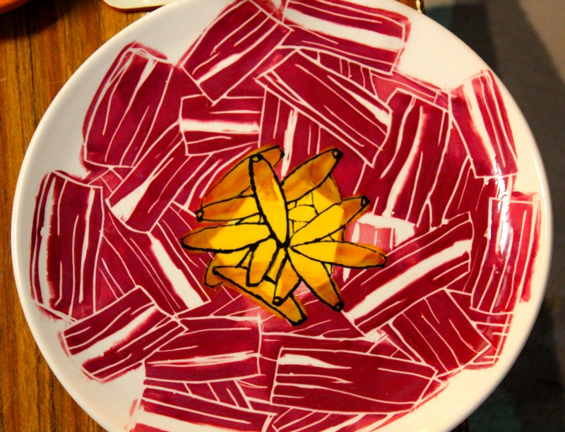 “Siempre he sentido fascinación por los regalos, los souvenirs. Eso que la gente se lleva a casa” Los afortunados que se dejaron ver por el Big Food Great Market se pudieron llevar a casa alguno de los objetos de la edición limitada y especialmente creada para el evento: una vajilla de platos y tazas hechos a mano e inspirada en la gastronomía española. El resultado: todo vendido a excepción de dos ejemplares que guarda a buen recaudo.
