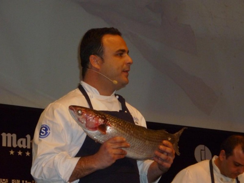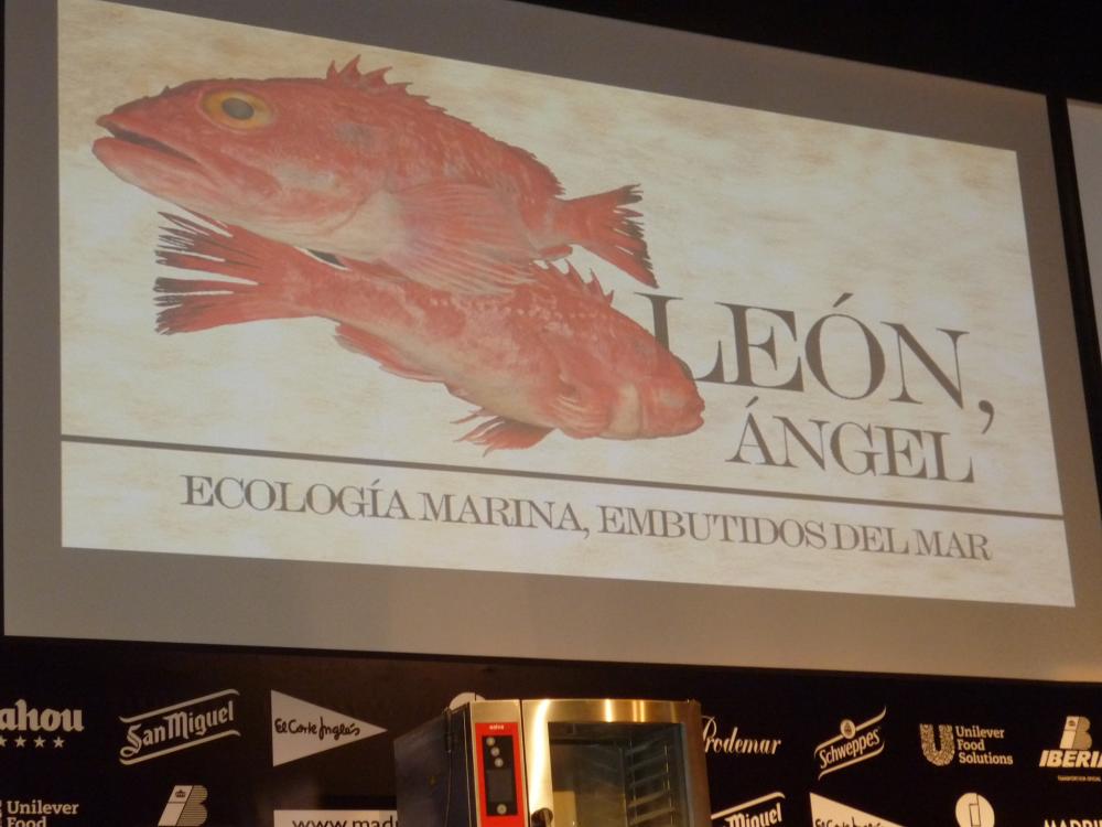 Ángel León cocinero gaditano afincado en Puerto de Santa María, en el restaurante Aponiente, donde este año ha logrado la más que merecida estrella michelín. Nos presenta en Madrid Fusión los embutidos marinos, hechos a base de pescado.