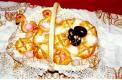 Se baten muy bien el azúcar y la mantequilla, cuidado que ésta esté a punto de pomada; después, y poco a poco, se añaden los huevos removiendo bien y, por último, la harina tamizada. La mezcla ha de quedar muy fina y preferentemente homogeneizada. Se raparte la mezcla en tres moldes (mayor, mediano y pequeño) previamente engrasados y hornea a unos 200º C hasta que el bizcocho esté a punto. Ya frío, se desmoldan los bizcochos y se colocan superpuestos a modo de torre. Reposan, así, unas dos horas. Se prepara el baño blanco mezclado el azúcar glasé con el agua, removiendo muy bien, y con él se bañan los bizcochos hasta cubrirlos de blanco. Una vez seco el conjunto, se decora con frutas confitadas, plumas de colores y algún pollito en la parte alta.