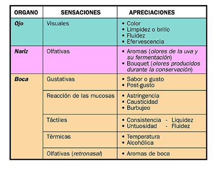 ¿Cuáles son los órganos y sensaciones que intervienen en la cata?
