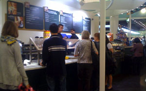 Las cafeterías de los aeropuertos que fueron pensadas para ser una típica barra donde había varios camareros que atendían se están convirtiendo en self-service donde una única persona corre para hacer un café y cobrar al mismo tiempo, y al estar agobiada no te dedica en muchos casos una sonrisa, haciendo que todo sea más frío, además de que las mesas suelen estar poco recogidas. Ya se sabe, hay poco personal, no como antes. A lo mejor es que antes nos pasamos, íbamos de sobrados, de poco trabajadores, a lo mejor se exigió mucho, pero es que ahora la gente ya está costubrada a esto: a hacer colas, a no ser sonreído... Y mientras unos pocos son cada día más ricos...