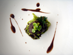 Carrillada de ibérico estofada con jugo de cacao