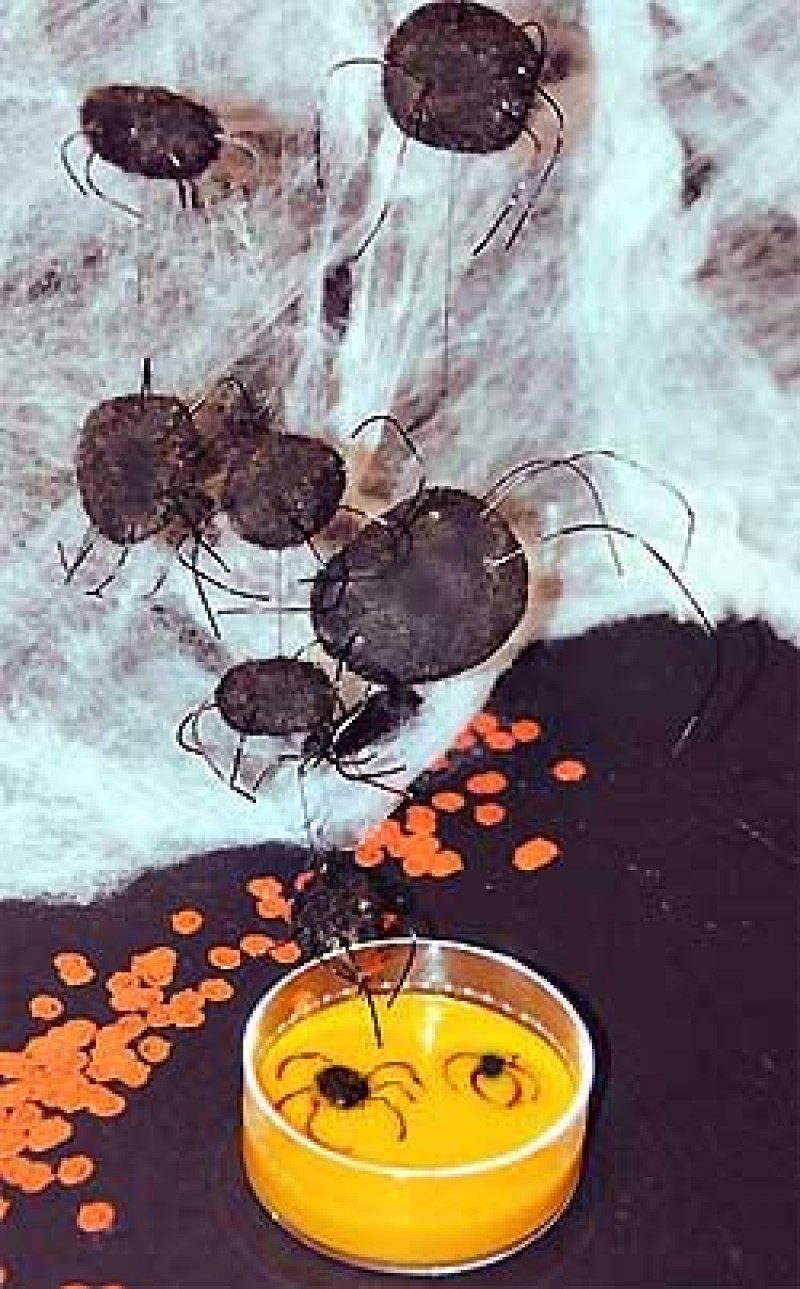 Servir en cuencos de cristal y, en el momento de servir, dibujar las arañas tal como se describe abajo