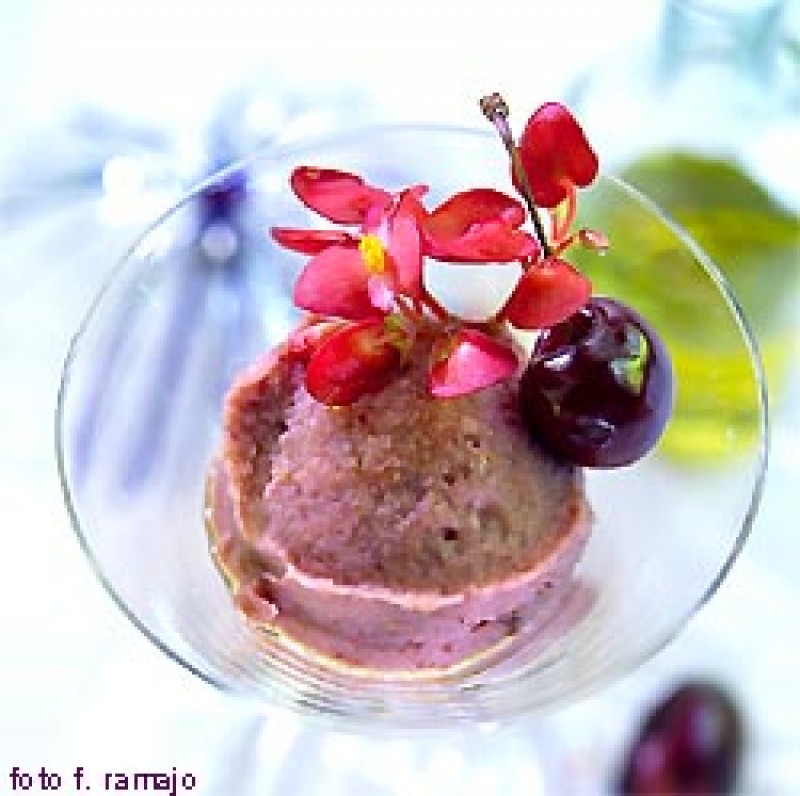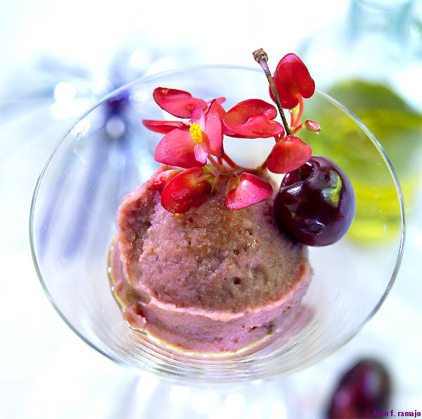 Helado de picotas y Aceite de oliva, variedad de manzanilla cacereña (6 pax)