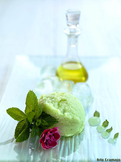 Helado de yogur de soja con menta y Aceite de oliva, variedad empeltre (6 pax)