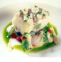 BACALAO CONFITADO CON PISTO DE HONGOS Y CREMA DE AJOS