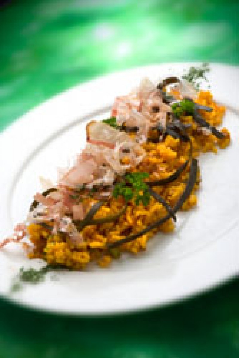 Para empezar podremos degustar, entre otras delicias gastronómicas, una Ensalada de cinco lechugas con arroz integral, queso de cabra y vinagreta de granadas con zumo de cítricos o unas Mini tortas de patata con romanescu a la plancha y polvo de boletus... una manera ideal de abrir el apetito.