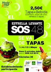 Esta iniciativa gastronómica, que se celebra del 4 al 13 de mayo, coincidiendo con el cuarto Festival Estrella de Levante SOS 4.8, ofrece al público una tapa especial -tanto de recetas clásicas como de las más vanguardistas y sofisticadas- y una bebida a elegir entre vino, cerveza o refresco al precio de 2,5 euros. Como principal novedad, en la presente edición también se puede disfrutar de distintas variedades de cóctel al precio de 3 euros, ya que participan siete locales de ocio nocturno.