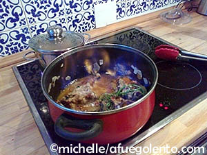 No olvidéis bañar la carne con el caldo que obtendreis dorando los huesos y recortes de cordero con unas verduritas y hierbas. luego flambear con un Fino....Ummmmh!