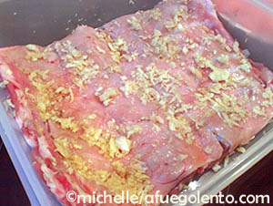 Dejar reposar al menos dos horas untado en un montón de ajo picado. Rebajará mucho el sabor fuerte de esta carne. Retirar bien el ajo después.